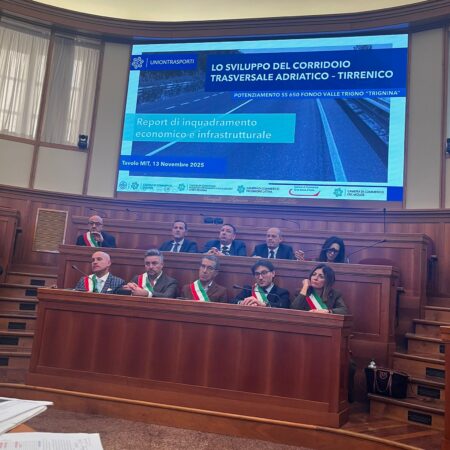 Roma, 13.11.25 – Uniontrasporti, la società delle infrastrutture e dei trasporti del sistema camerale italiano, e le Camere di Commercio dell’area Adriatico–Tirreno centro–meridionale (Chieti-Pescara, Molise, Frosinone-Latina, Caserta e Gran Sasso d’Italia) salutano con soddisfazione l’ulteriore passo in avanti compiuto oggi al Ministero delle Infrastrutture e dei Trasporti verso il potenziamento della strada Statale 650 “Trignina”.